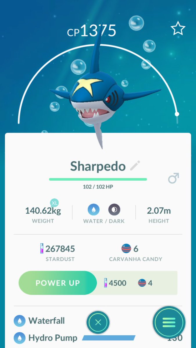 Web The level of friendship is shown through a heart that is displayed above the Pokemon on the app. Once this Pokemon evolves it will evolve into Sharpedo. Savage Pokémon 1 Attack Height Weight Gender Egg Groups 207 08m 459 lbs.